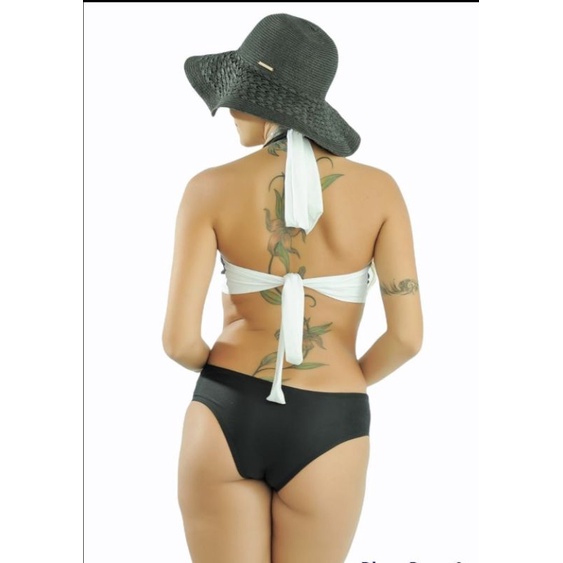 Biquíni duas cores todo liso com amarração atrás. Tanga com um charmoso recorte na frente. Trabalhamos com material de excelente qualidade. Venha conferir!
