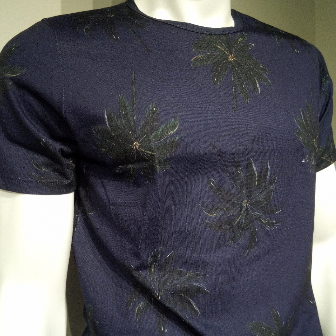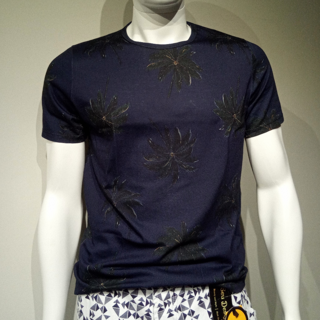 Possui estampa tecnológica digital, com padronagem de verão tropical totalmente sem toque. Esse tipo de estampa mantém a maciez do algodão junto com a qualidade e definição das cores e traços, proporcionando caimento leve, toque macio e suave, garantindo muito estilo e conforto térmico numa peça só.