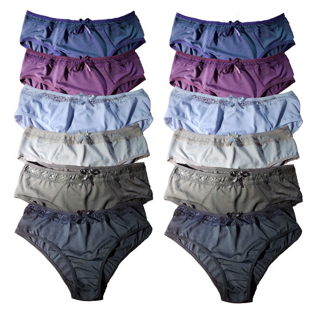 As calcinhas são produzidas em tecido de microfibra de alta qualidade (90% poliéster, 10% elastano). Tem o tecido macio e de grande durabilidade, que traz qualidade e conforto para o seu dia a dia. O kit é enviado em cores sortidas.
